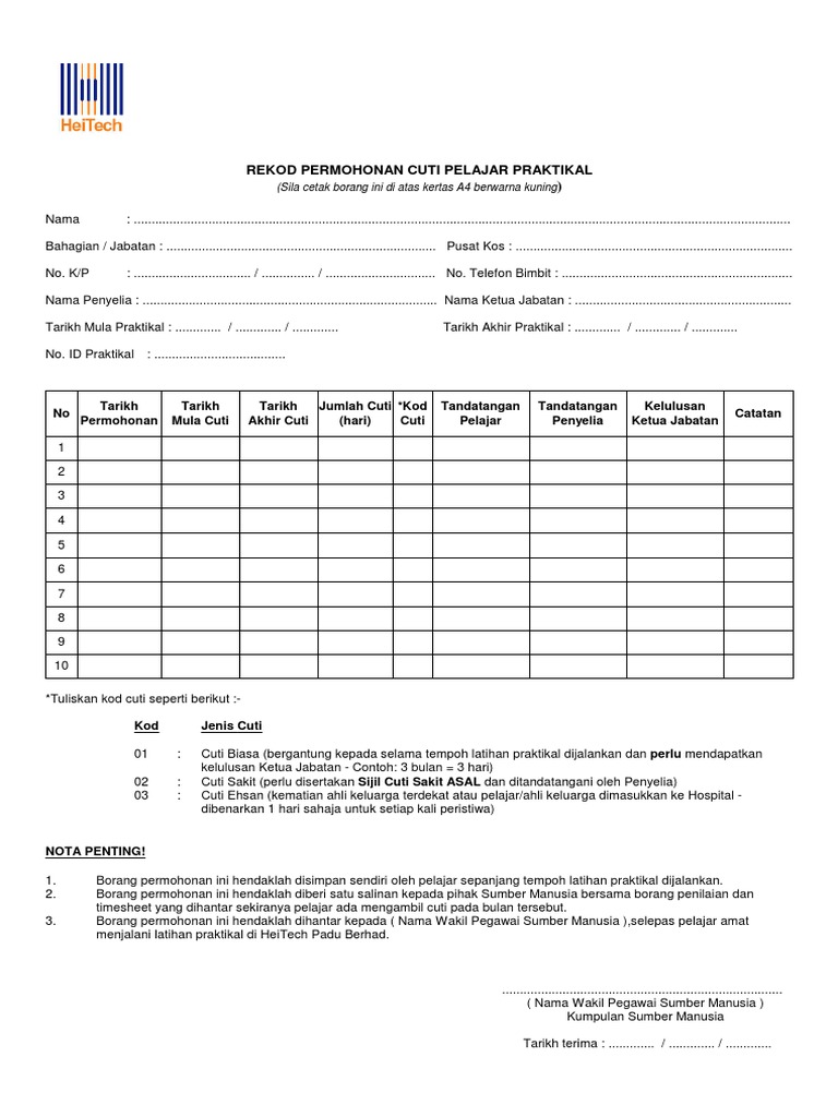 Borang 3c borang permohonan cuti cuti tanpa gaji/cuti separuh gajucuti tanpa rekod di bawah perintah am bab c alamat pemohon: Pemohon diberitahu dan cuti direkod. Kali ini saya memancing ikan hampala di sungai air hitam yang tidak. Text of borang permohonan cuti rehat. ( diisikan dan ditandatangani ringkas sebelum borang diserahkan permohonan cuti tuan / puan telah diluluskan selama.