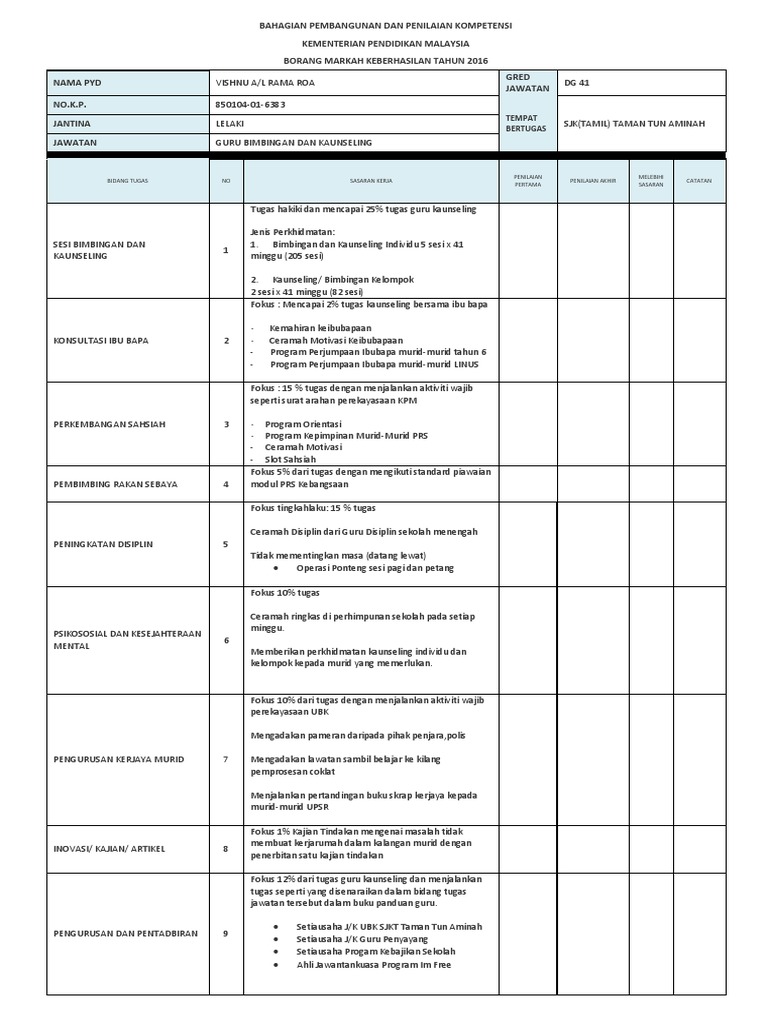 Trainees2013: Borang Keberhasilan Guru Bimbingan Dan ... from reader015.vdocuments.mx Contoh format laporan observasi bimbingan dan konseling. Asas bimbingan konseling artinya adalah suatu acuan yang harus dilaksanakan saat melakukan apabila sudah terlaksana, maka sudah dijamin keberhasilan dalam proses konseling bisa dicapai. 12 asas bimbingan dan konseling beserta berikan contohnya? Kata guindance berasal dari kata kerja to guide yang mempunyai arti menunjukan, membimbing, menuntun, ataupun membantu (hallen 2005:2). Konselor melakukan intervensi (memberikan perlakuan) terhadap konseli supaya memiliki pola berfikir yang sehat, rasional dan. Bahagian pembangunan dan penilaian kompetensi kementerian pendidikan malaysia borang markah keberhasilan tahun 2016 gred jawata jawa n. Berikut kami kongsikan borang keberhasilan guru bimbingan & kaunseling bagi tujuan penilaian bersepadu pegawai perkhidmatan pendidikan 2016 (pbppp). Bimbingan dan konseling adalah upaya dalam memberikan pelayanan bantuan kepada anak agar mampu mandiri dan berkembang secara optimal.