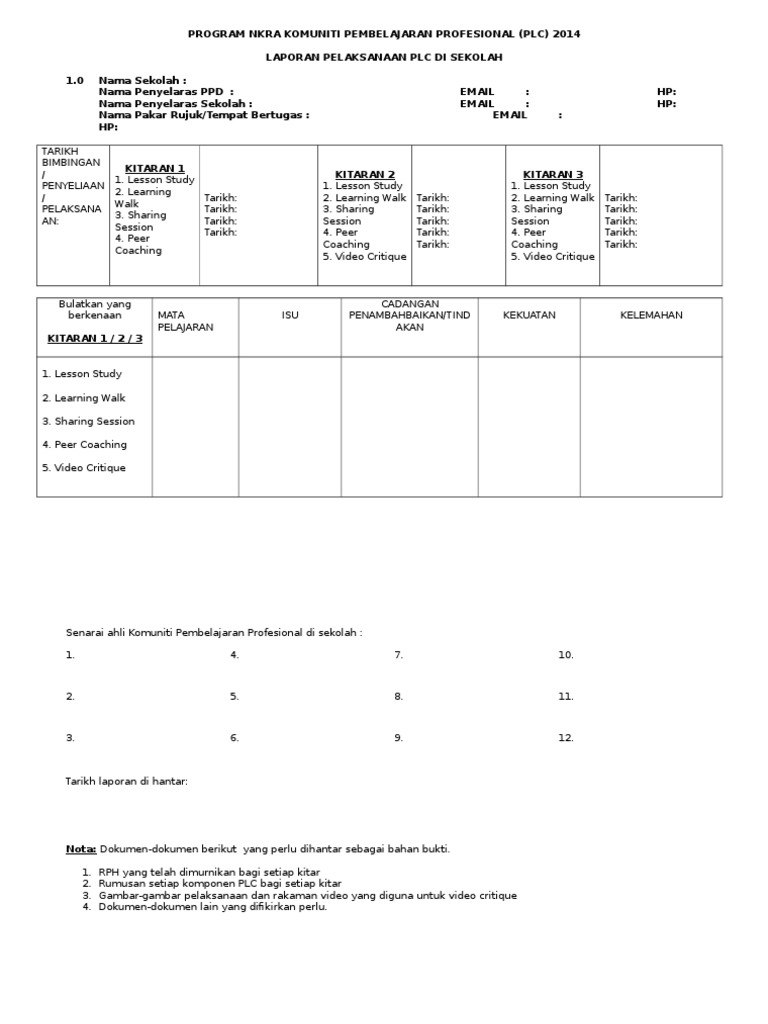 Contoh Borang Plc Peer Coaching from 0.academia-photos.com Sesi perkongsian boleh dilaksanakan melalui. Plc menggalakkan kolaborasi yang lebih aktif dalam kalangan guru bagi. Rencana pelaksanaan pembelajaran, atau disingkat rpp, adalah pegangan seorang guru dalam mengajar di dalam kelas. Laporan program komuniti pembelajaran profesional (plc) smk tinggi bukit mertajam kelas tarikh masa tajuk program professional. Dimulai dengan informasi kepada guru melalui dinas pendidikan sampai dengan pelaksanaan ppg dalam jabatan tahun 2019 sebagai berikut Pelaksanaan pembangunan desa dan penyelenggaraan pemerintahan desa; Bpd, bpd sebagai wakil masyarakat. Strategi tips borang pelaksanaan plc plc adalah merupakan singkatan kepada professional learning community atau komuniti pembelajaran profesional.