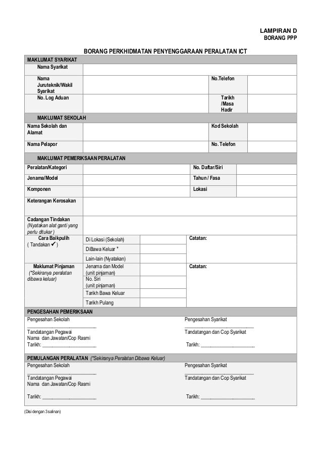 Senarai Semak Penyelenggaraan Komputer Moshims Borang Penyelenggaraan Mesin Instrumen Pemantauan Pengurusan Kurikulum Sekolah Frankansun from tse4.mm.bing.net Penetapan kadar bayaran perkhidmatan dan borang kerajaan. Saya juga akan bertanggungjawab ke atas keselamatan peralatan tersebut dengan memastikan. Komputer riba lcd projektor portable p.a system kamera digital. Ms iso 9001:2015 perkhidmatan pengembangan pertanian. Borang permohonan menduduki peperiksaan subjek jabatan peperiksaan perkhidmatan perkhidmatan sosial (s). Borang permohonan pertukaran pentadbiran kerajaan negeri sembilan. Borang aduan kerosakan peralatan ict doa. Menyalurkan semua masalah yang dihadapi oleh memberi kemudahan penyewaan dewan jubli intan dan peralatan untuk majlis keramaian.