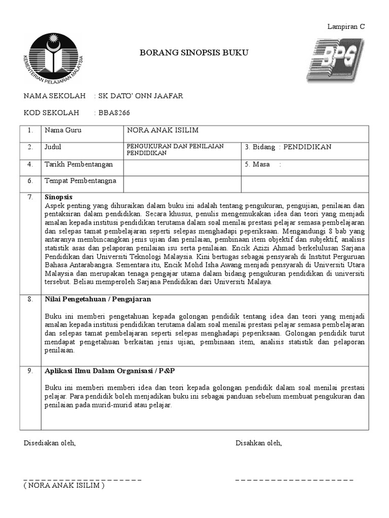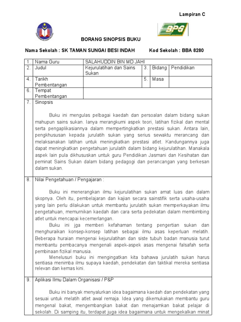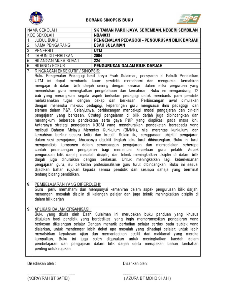 Related : Borang Sinopsis Buku Pdf / Doc Lampiran C Borang Sinopsis Buku Siti Intan Badariah Academia Edu - 91%(11)91% found this document useful (11 votes)..