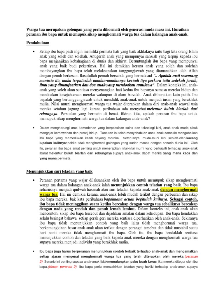 Ibu Bapa Perlu Memupuk Sikap Menghormati Antara Kaum : Cara Menghormati Orang Tua 13 Langkah Dengan Gambar Wikihow : Ibu dan bapa perlu maklum bahawa makanan yang seimbang mengandungi nutrien seperti karbohidrat, protein, lemak, vitamin dan garam galian berdasarkan perbincangan di atas, kita dapat simpulkan bahawa ibu dan bapa memainkan peranan yang besar untuk memupuk amalan gaya.