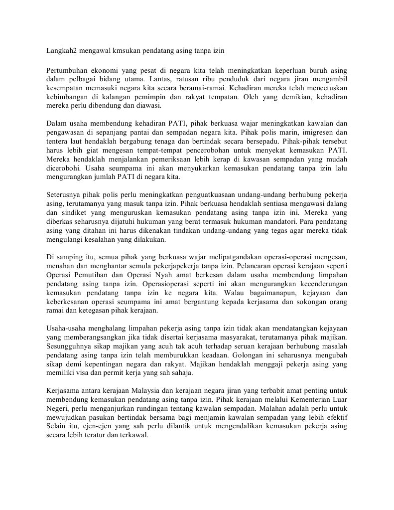 Kedatangan pendatang asing, khususnya yang tanpa izin, juga mendatangkan masalah perumahan. Menurut kamus dewan edisi keempat , pendatang asing merupakan orang asing yang memasuki sesebuah negara lain dengan tidak mendapat kebenaran daripada kerajaan tersebut. Pendatang asing tanpa izin (pati), pendatang tanpa izin (pti) atau pendatang haram merupakan golongan orang yang masuk atau tinggal di sesebuah negara secara haram. Bertambah kegiatan jenayah yang dilakukan oleh pendatang asing. Hrw.org en unauthorized migrants face arrest and detention in unsanitary and overcrowded immigration detention centers, and caning for violating the immigration law. Merebaknya beberapa jenis penyakit berjangkit. Pemegang pas lawatan sosial (pls), pas lawatan kerja sementara (plks) dan pembantu rumah asing yang tinggal lebih masa pada atau sebelum 31 disember 2020. Kedutaan asing juga enggan membiayai kos penghantaran pulang. Hal ini menyebabkan banyak tenaga, wang, dan masa kerajaan dibazirkan dalam usaha mencegah kemasukan pendatang tanpa izin. Pelaksanaan pelan rekalibrasi pati diperkenalkan bagi menangani isu kekurangan tenaga kerja yang dihadapi oleh pihak industri pada ketika ini susulan daripada pembekuan pengambilan pekerja asing baharu dalam negara. 999 tv3 lubuk pendatang asing tanpa izin (pati) sumber: Kedatangan pendatang asing, khususnya yang tanpa izin, juga mendatangkan masalah perumahan. Ada antara pendatang asing tanpa izin ini merupakan penjenayah yang dikehendaki oleh pihak berkuasa di negara asal mereka.